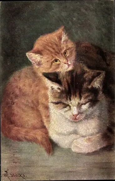 Künstler Ak Stocks, M., Katze und junges Kätzchen