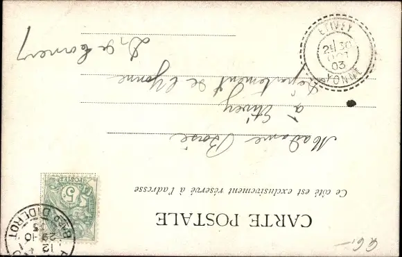 Zustand, siehe Scan, gelaufen, 1903 - ca 9 cm X 14 cm