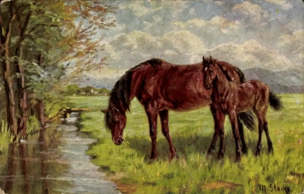 Künstler Ak Stocks, M., Pferde