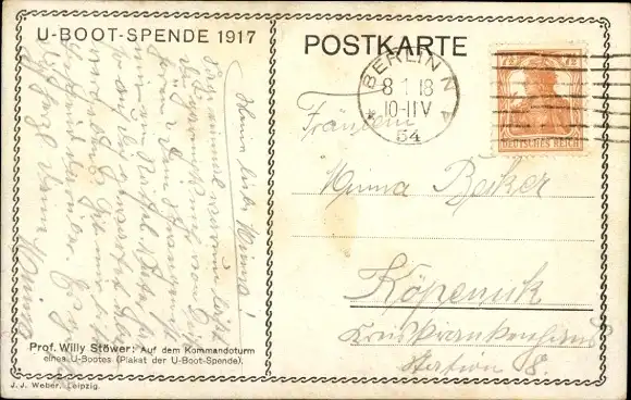 Künstler Ak Stöwer, Willy, Deutsches U Boot, Unterseeboot, Kaiserliche Marine, U-Boot-Spende 1917