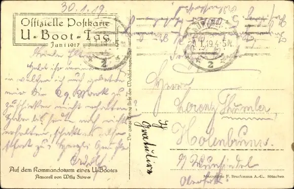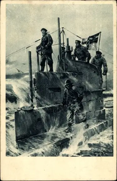 Künstler Ak Stöwer, Willy, Deutsches U Boot, auf dem Kommandoturm, U Boot Tag 1917