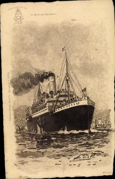 Künstler Ak Stöwer, Willy, Passagierdampfer der Hamburg Amerika Linie, HAPAG