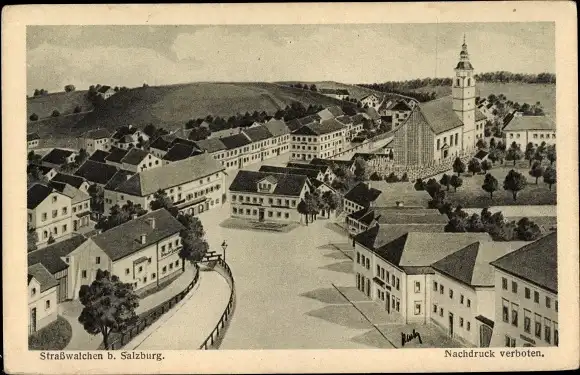 Künstler Ak Straßwalchen in Salzburg Österreich, Ortspartie, Kirche