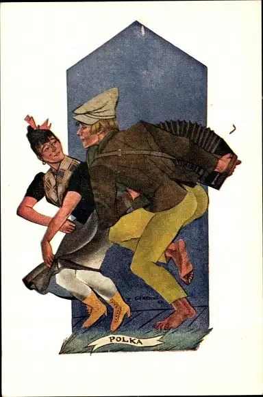 Künstler Ak Stryjenska, La Polka, Paar in polnischen Trachten, Tänzer