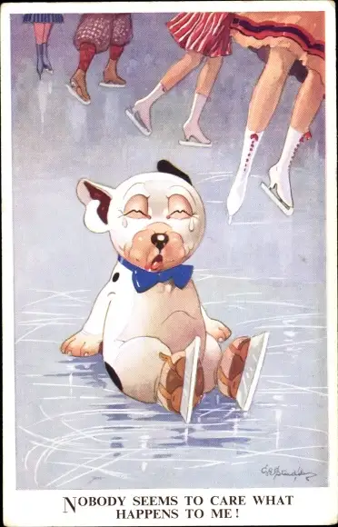 Künstler Ak Studdy, Bonzo der Hund beim Eislaufen