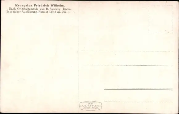Künstler Ak Swierzy, R., Kronprinz Wilhelm von Preußen, Portrait