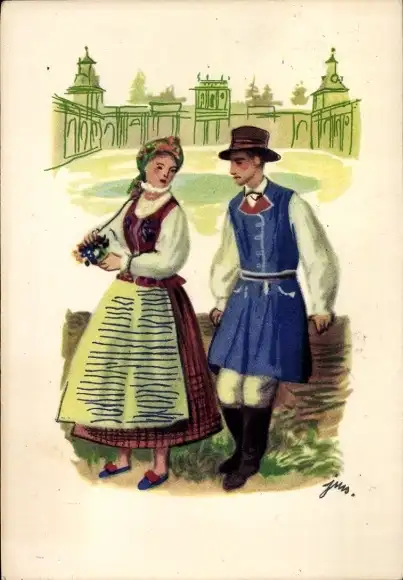 Künstler Ak Szancer, Paar in polnischen Volkstrachten