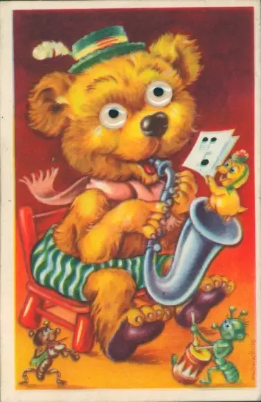 Ansichtskarte, Postkarte, Blasinstrument, Blasinstrumente, Musikinstrument, Musikinstrumente, Saxophon