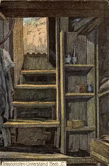 Künstler Ak Telephonisten Unterstand, Beob. C, I WK