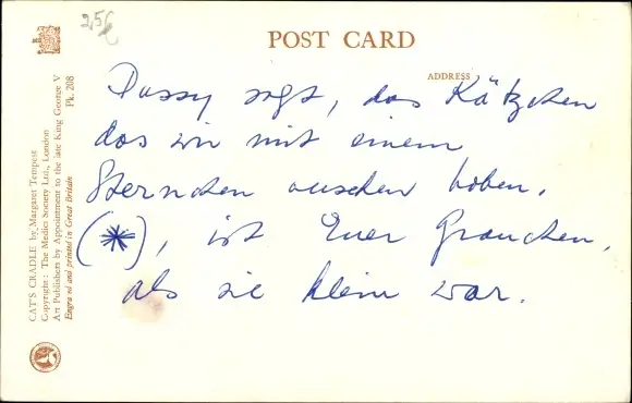 Künstler Ak Tempest, Margaret, Cat's Cradle, vermenschlichte Katzen, Wiege