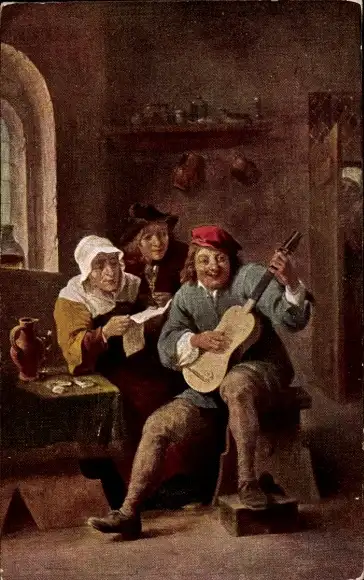 Künstler Ak Teniers, D., Gitarre spielender Bauer