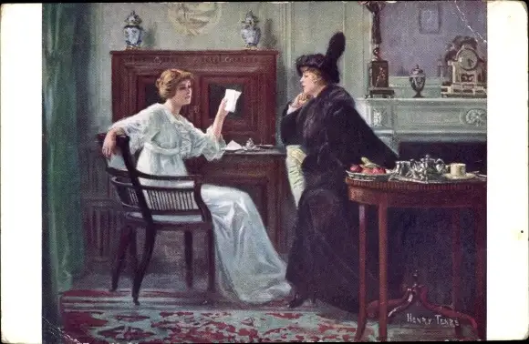 Künstler Ak Tenre, Der Brief, zwei Frauen
