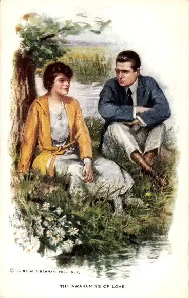 Künstler Ak The Awakening of Love, Liebespaar
