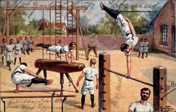 Künstler Ak Thiele, Arthur, Turnen, Turner am Barren, Reck, Pferd
