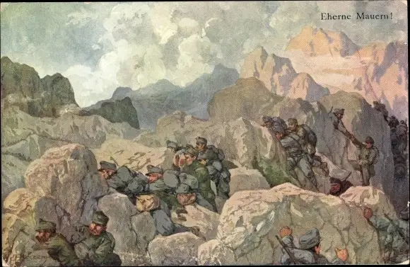 Künstler Ak Tiroler Alpenjäger, Eherne Mauern, Kuk Armee