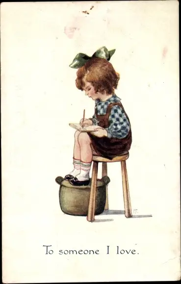 Künstler Ak To someone I love, Mädchen schreibt einen Brief