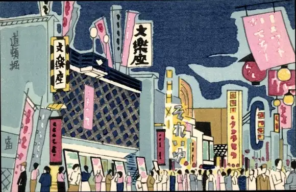 Künstler Ak Tokuriki, T., Japan, Passanten, Geschäfte