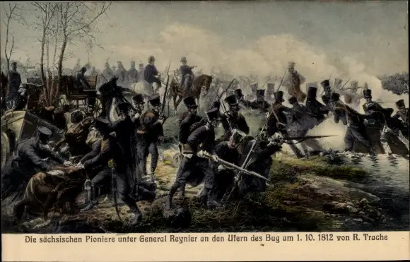 Künstler Ak Trache, R., Sächsische Pioniere unter General Reynier, Ufer des Bug, 1.10.1812