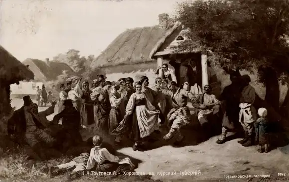 Künstler Ak Trutovsky, K., Dorf, Dorfbewohner, Wohnhaus