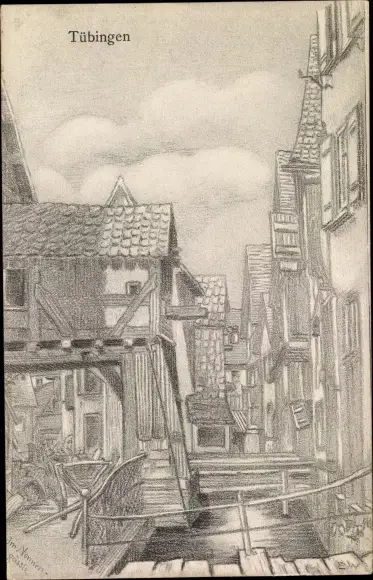 Künstler Ak Tübingen am Neckar, Partie im Nonnengässle, Stege