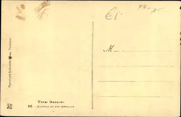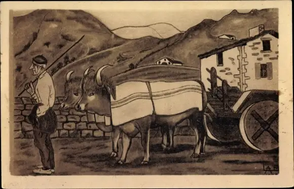 Künstler Ak Type Basque, Mann mit Rinderkarren