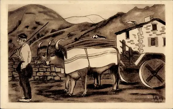 Künstler Ak Type Basque, Mann mit Rinderkarren
