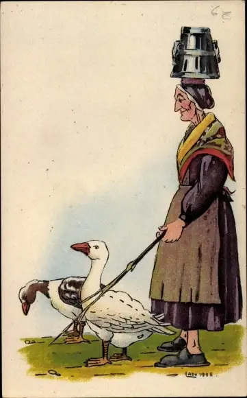 Künstler Ak Type Basques, Femme a la Ferrata, Bäuerin, Gänse