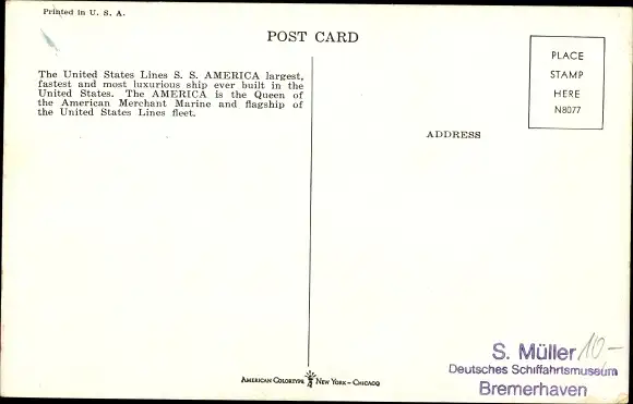 Künstler Ak USL Dampfer SS America, United States Lines