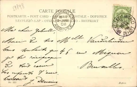 Zustand, siehe Scan, gelaufen, 1908- Munk 329 - ca 14 cm X 9 cm