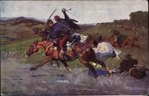 Künstler Ak Ungarische Husaren, Kampf zu Pferd