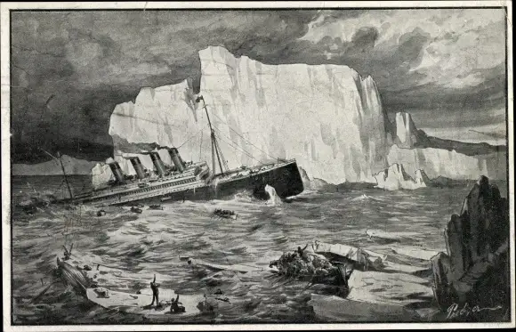 Künstler Ak Untergang des Dampfers Titanic, Cunard Line, Eisberg