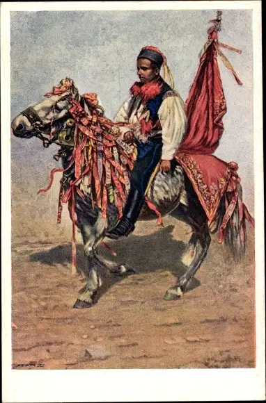 Künstler Ak Uprka, J., Reiter in tschechischer Volkstracht
