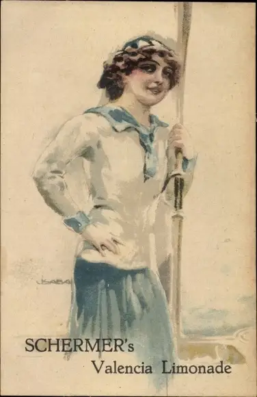 Künstler Ak Usabal, Luis, Junge Frau mit einem Ruder, Schermer's Valencia Limonade, Reklame