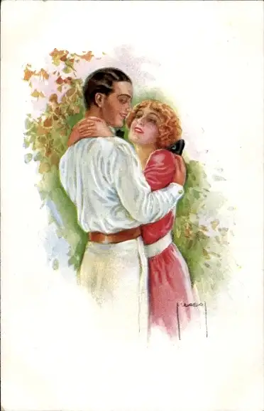 Künstler Ak Usabal, Luis, Liebespaar, Umarmung, Mann, Frau