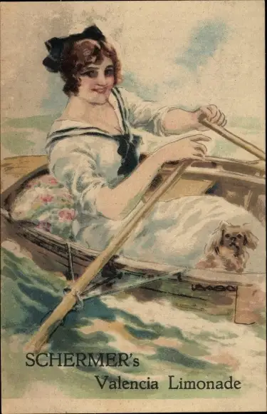 Künstler Ak Usabal, Schermer's Valencia Limonade, Reklame, Frau im Ruderboot