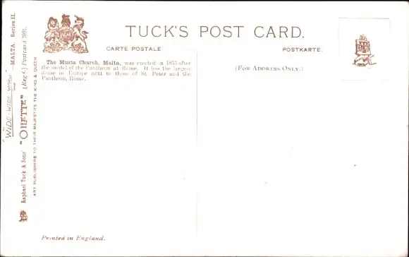 Künstler Ak Valletta Malta, Musta Church, Tuck 7091