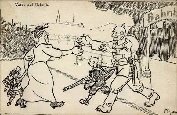Künstler Ak Vater auf Urlaub, Soldat kehrt zurück, Familie, Begrüßung