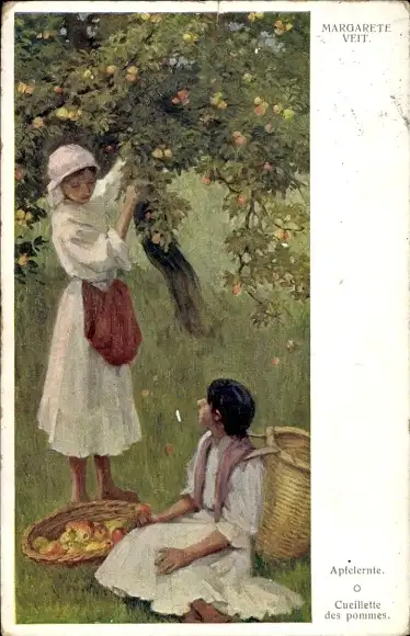 Künstler Ak Veit, M., Apfelernte, Apfelbaum, Früchte