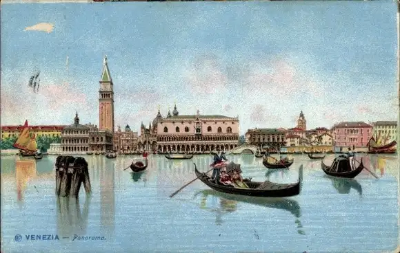 Künstler Ak Venedig Venedig Venetien, Panorama, Gondel