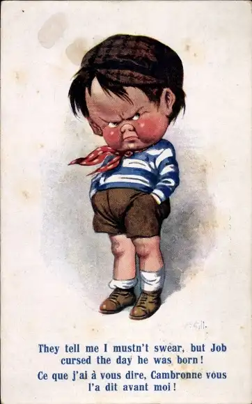 Künstler Ak Verärgerter Junge, Rote Wangen, Mütze, Arbeit