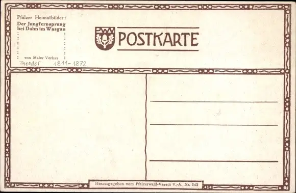 Künstler Ak Verhas, Dahn in der Pfalz, Jungfernsprung
