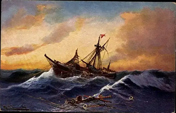 Künstler Ak Verlassen, Segelschiff, Stürmisches Meer