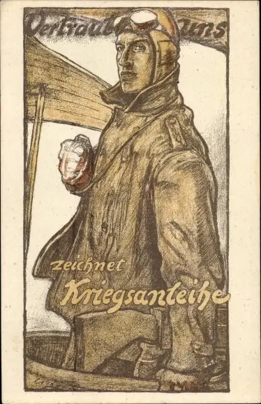 Künstler Ak Vertraut uns, Zeichnet Kriegsanleihe, Flieger
