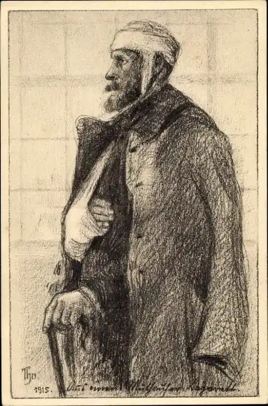 Künstler Ak Verwundeter deutscher Soldat, I WK
