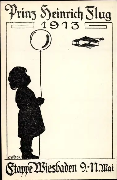 Künstler Ak Vietor, K., Prinz Heinrich Flug 1913, Doppeldecker Flugzeug, Kind mit Ballon