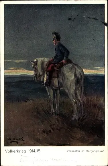 Künstler Ak Vorposten im Morgengrauen, I WK, Reiter