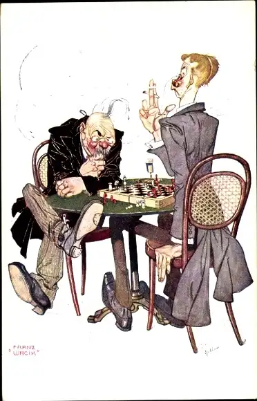 Künstler Ak Wacik, Franz, Männer spielen Schach