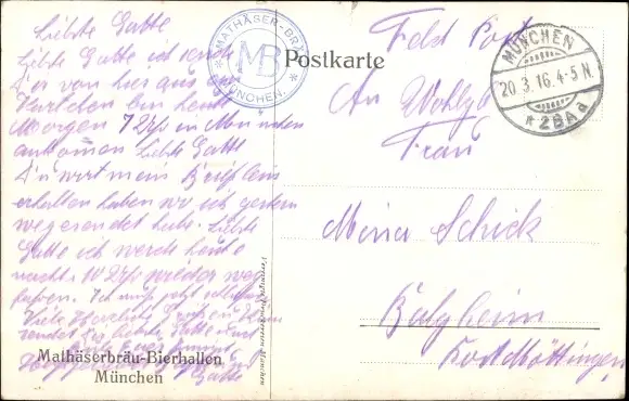 Zustand, siehe Scan, gelaufen, 1916 - ca 14 cm X 9 cm