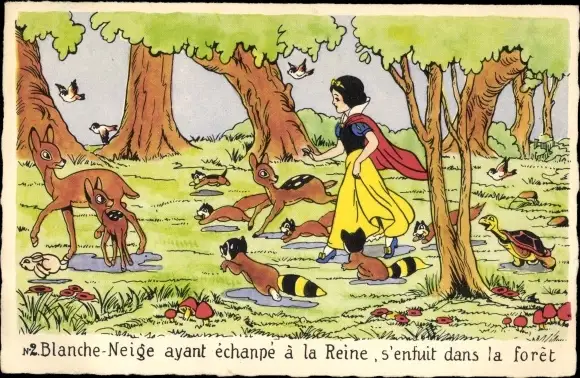 Künstler Ak Walt Disney, Blanche Neige ayant échanpé à la Reine, Schneewittchen