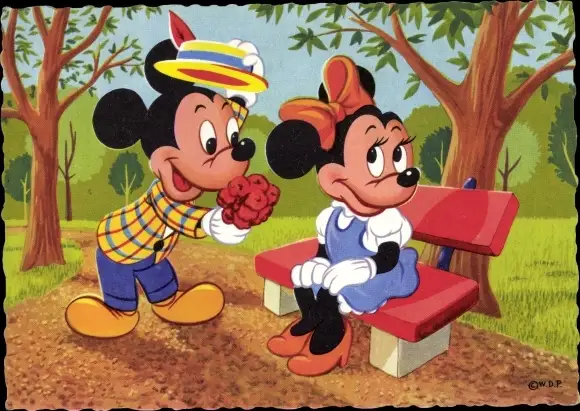 Künstler Ak Walt Disney, Comic, Mickey und Minnie Maus